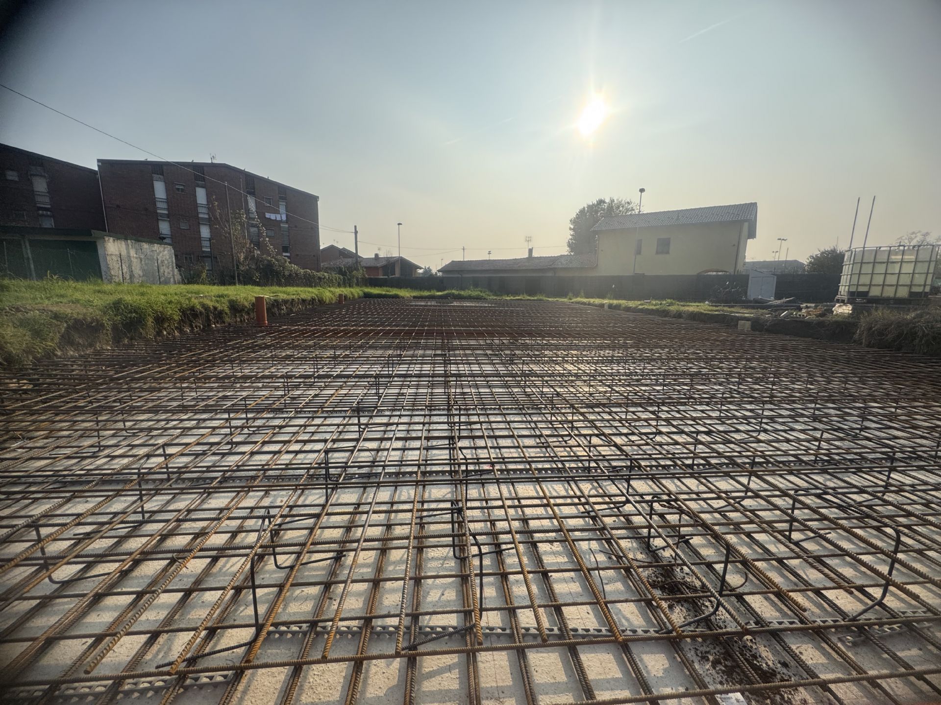 - posa dell'armatura in acciaio della platea di fondazione della struttura portante antisismica.