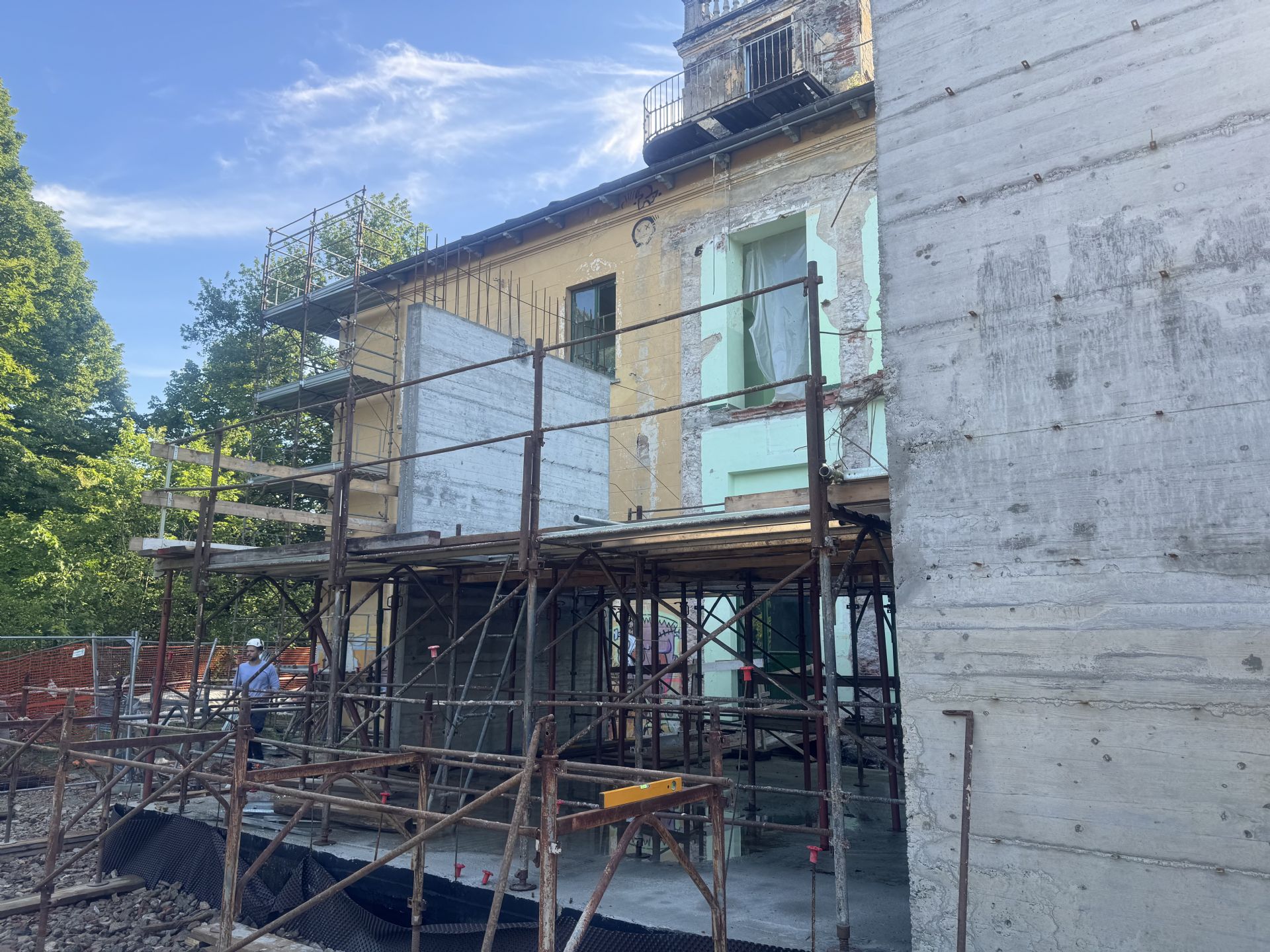 Oggi sono in corso i lavori di montaggio del ponteggio a supporto delle attività per la costruzione della nuova palazzina.