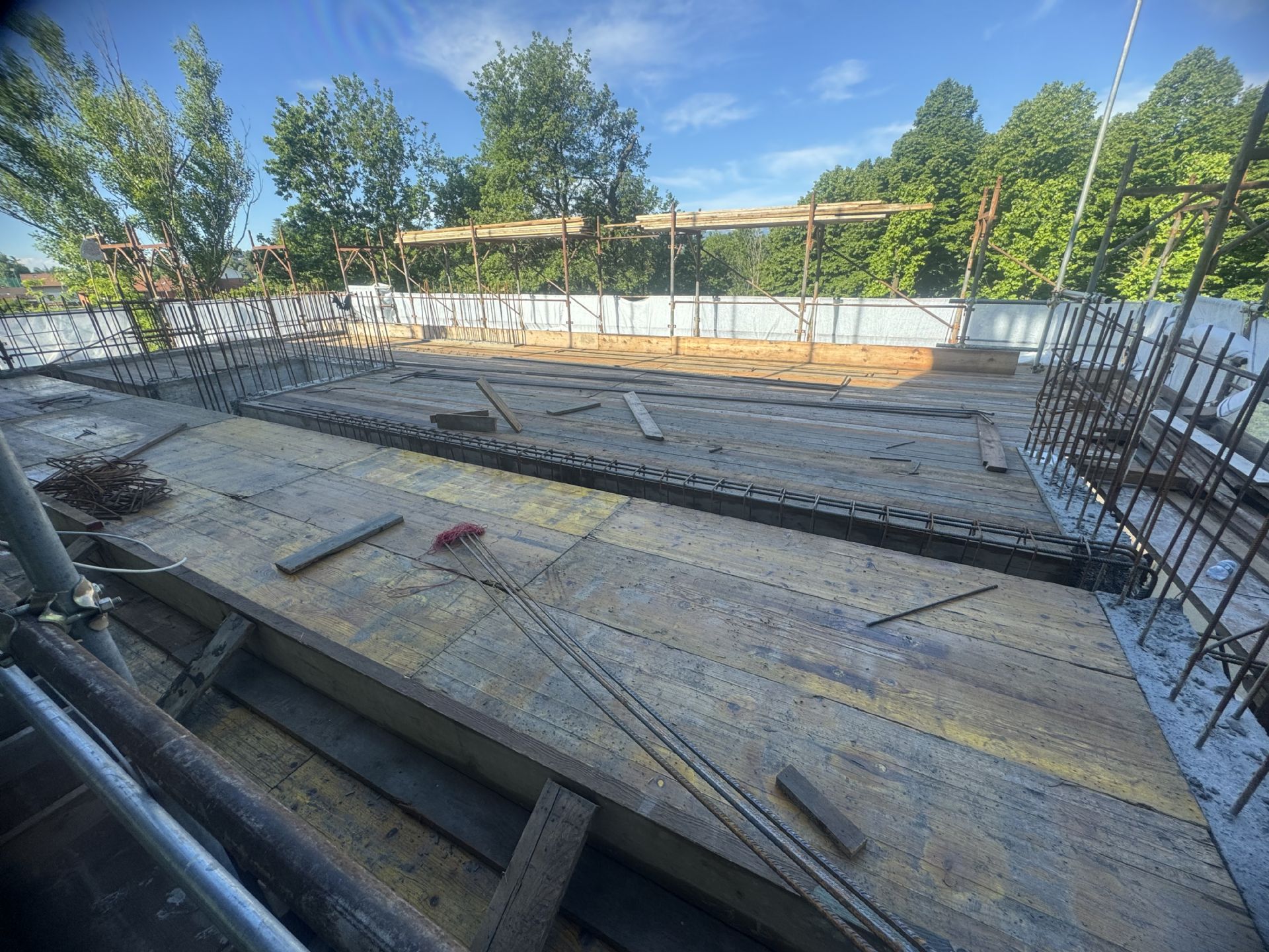 Sono in corso i lavori per la realizzazione dell'armatura in acciaio del solaio a sbalzo del piano primo del nuovo blocco servizi della villa storica.