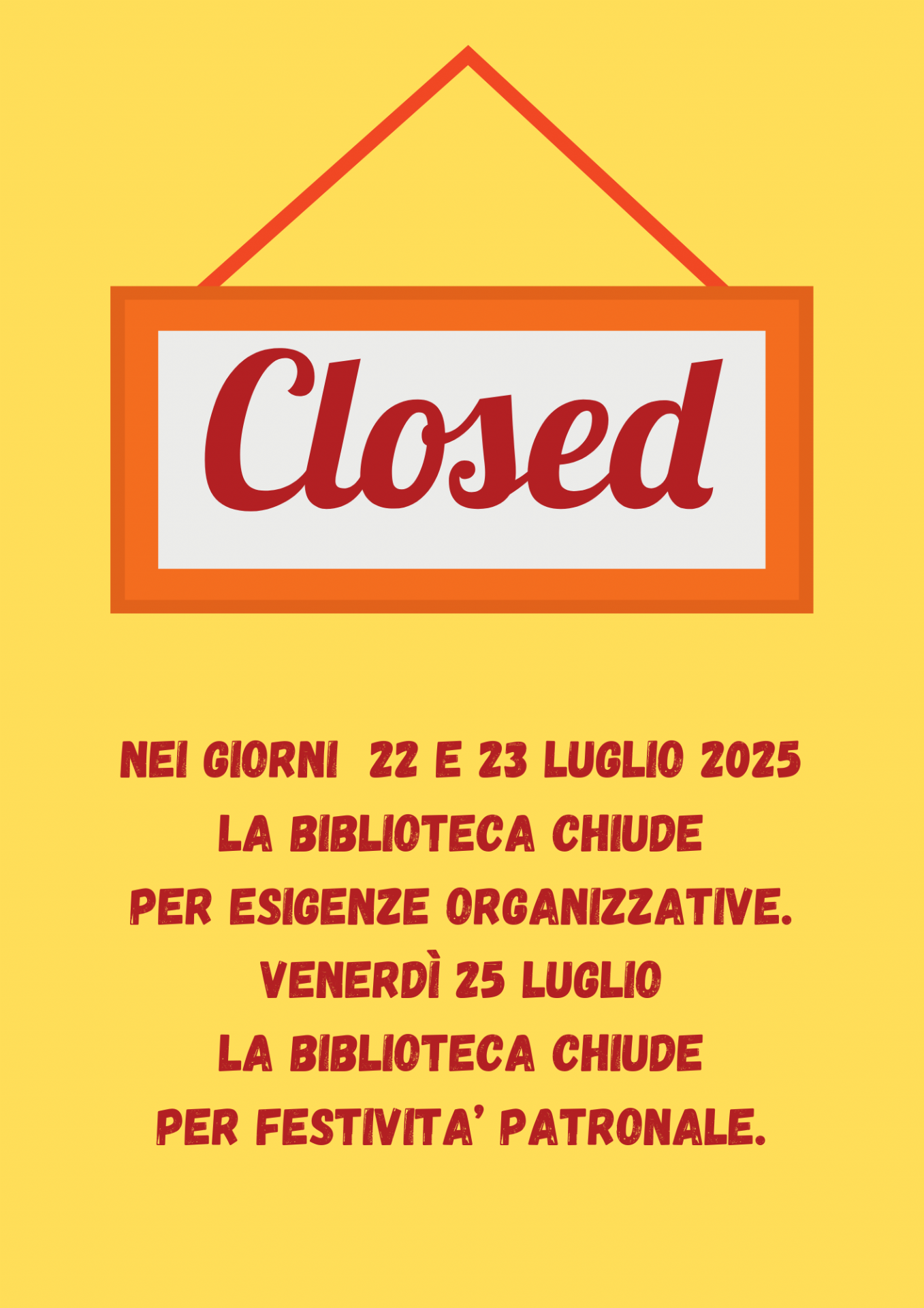 - venerdì 25 luglio per festività patronale.