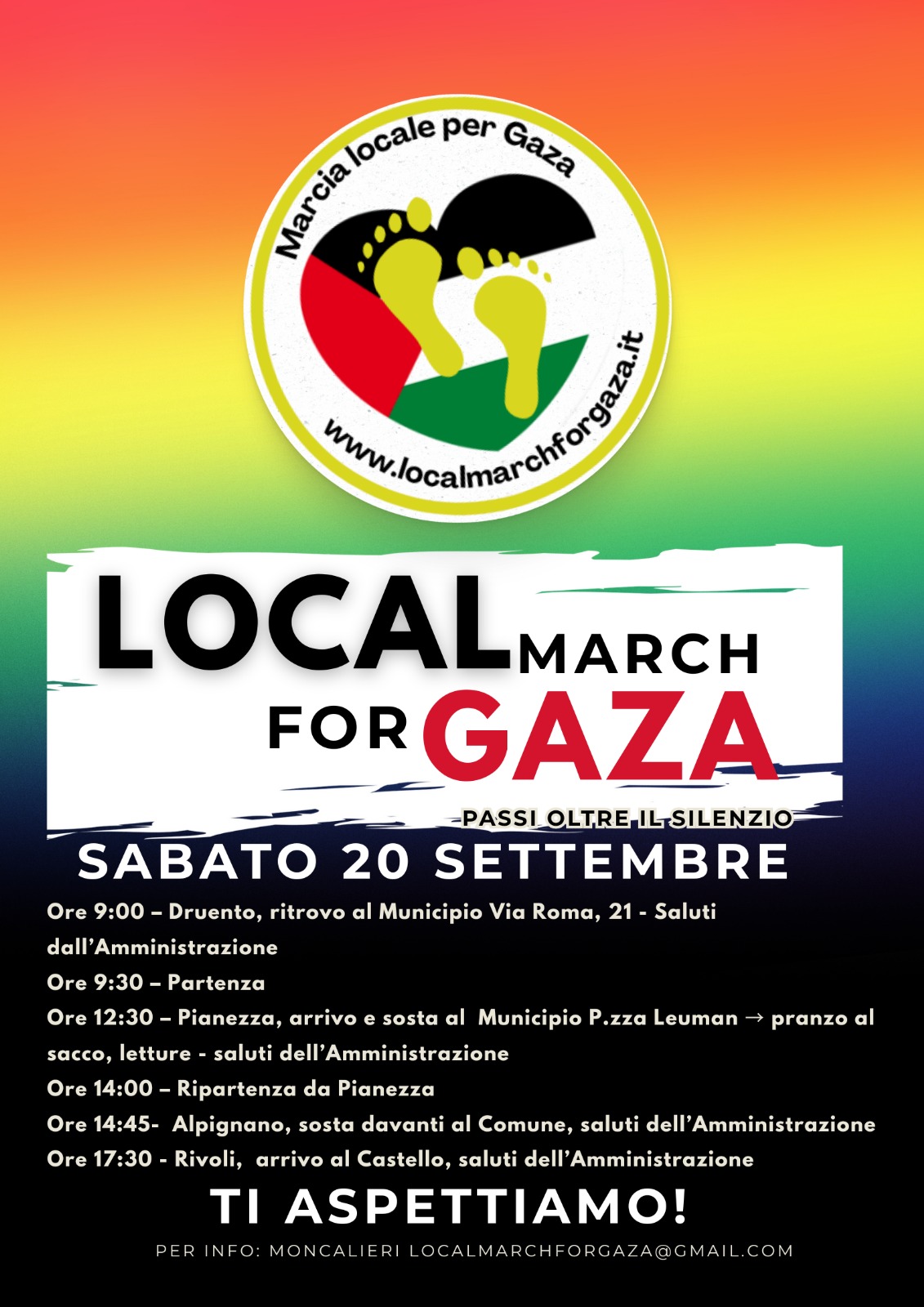 Il Comune di Alpignano aderisce alla Local March for Gaza, un’iniziativa internazionale che unisce città e comunità in un unico messaggio di pace, solidarietà e rispetto dei diritti umani.