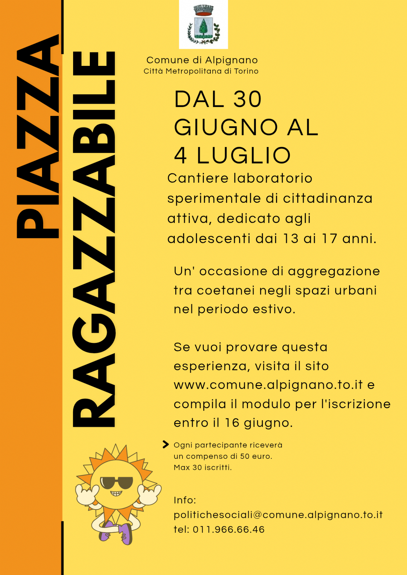 Dal 30/6/2025 al 4/7/2025 il Comune di Alpignano apre il cantiere / laboratorio sperimentale di cittadinanza attiva dedicato agli adolescenti dai 13 ai 17 anni