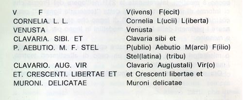 L'iscrizione funeraria (II secolo dell'Impero), in marmo violaceo proveniente dal Veneto, ricorda la bella Venusta, liberta di Lucio Cornelio e vedova di Publio Ebuzio figlio di Marco, della tribù Stellatina, fabbricante di chiodi e appartenente all'ordine degli Augustali. Il sepolcro comune è dedicato anche alla liberta Crescente e alla "delicatae" Murone, giovane schiavetta e probabile "trastullo" di Venusta. La lapide fu collocata, su indicazione del proprietario Antonio Riberi, in un vestibolo del Castello, poi ceduto all'Istituto Missioni della Consolata. Nel dicembre 1995 l'epigrafe romana, da anni già custodita nei locali della Biblioteca Comunale, veniva ufficialmente donata al Municipio di Alpignano.