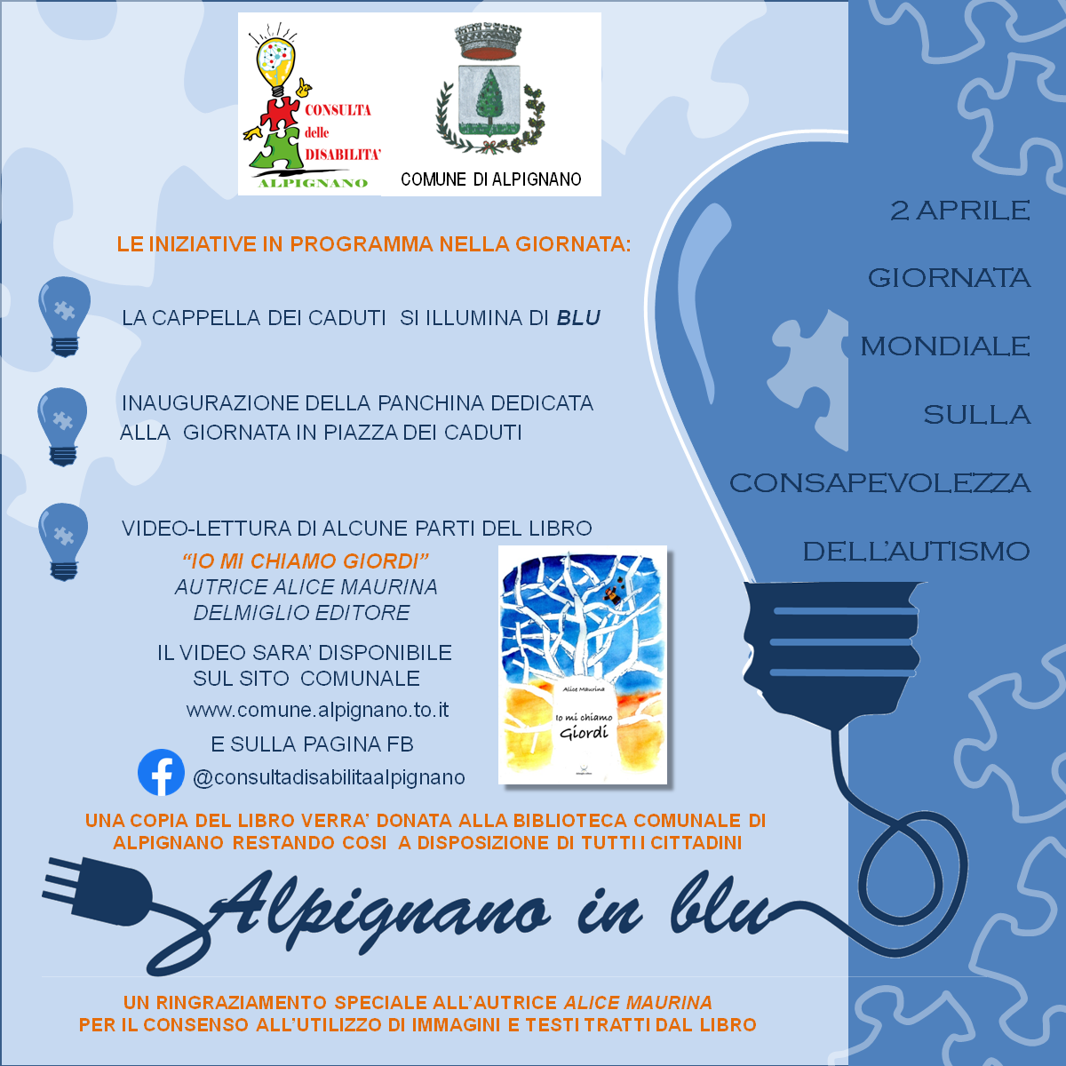 2 aprile 2021 - Giornata mondiale sulla consapevolezza dell'autismo: Alpignano in blu