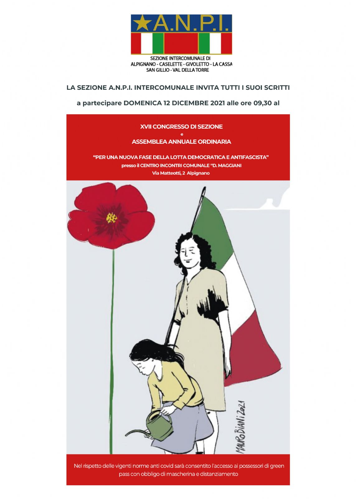 La Sezione ANPI Intercomunale invita tutti i suoi iscritti a partecipare domenica 12 dicembre alle ore 9.30 al XVII Congresso di Sezione e Assemblea Annuale Ordinaria presso il Centro di Incontro Dino Maggiani in via Matteotti 2.