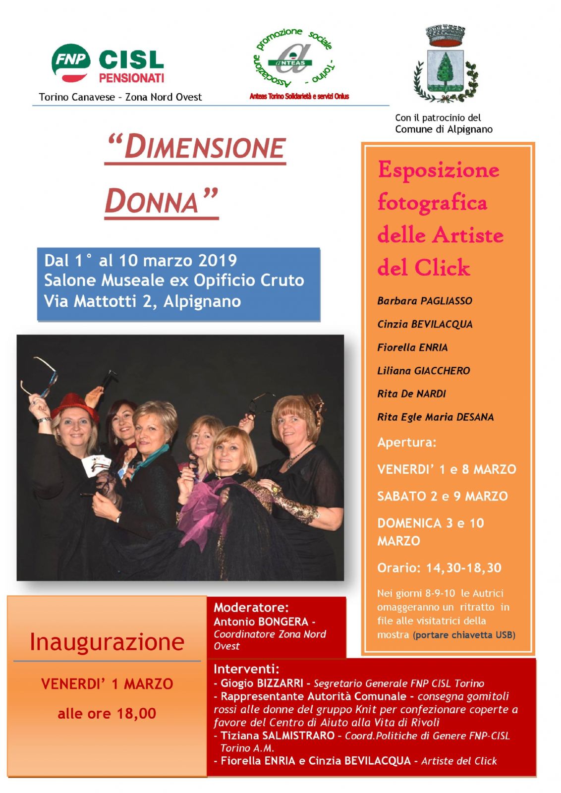 La FNP Pensionati Cisl di Alpignano e l'Associazione Anteas Torino Solidarietà organizzano una mostra fotografica "Dimensione donna" delle Artiste del Click in occasione della Giornata Internazionale della donna.