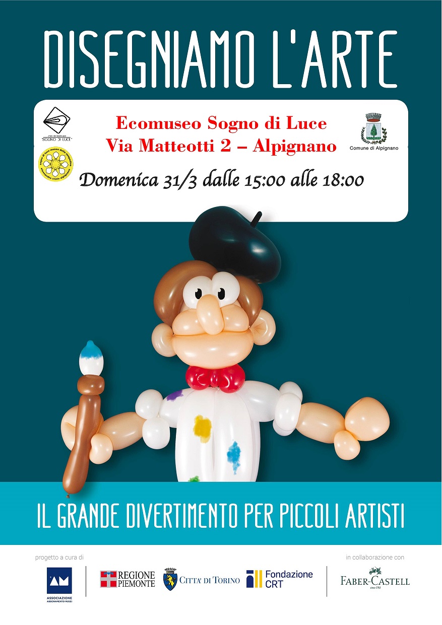 Ad Alpignano domenica 31 marzo, dalle ore 15 alle 18 sarà possibile partecipare a "Disegniamo l'arte" presso l'Ecomuseo Sogno di Luce in via Matteotti 2. Si suggerisce la prenotazione al numero 3701352596 (l'iniziativa prevede un costo di € 3.00 - info www.ecomuseocruto.it)