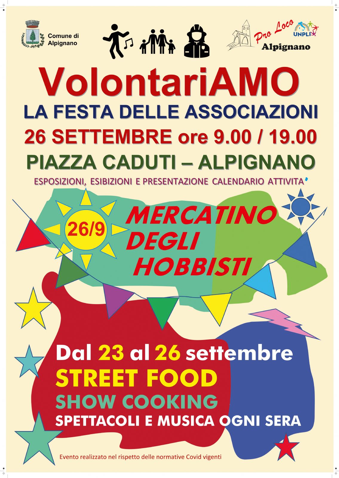 La Pro Loco Alpignano organizza "VolontariAMO, la festa delle associazioni", esposizioni, esibizioni e presentazione del calendario delle prossime attività delle associazioni, domenica 26 settembre, dalle ore 9.00 alle 19.00 in piazza Caduti.