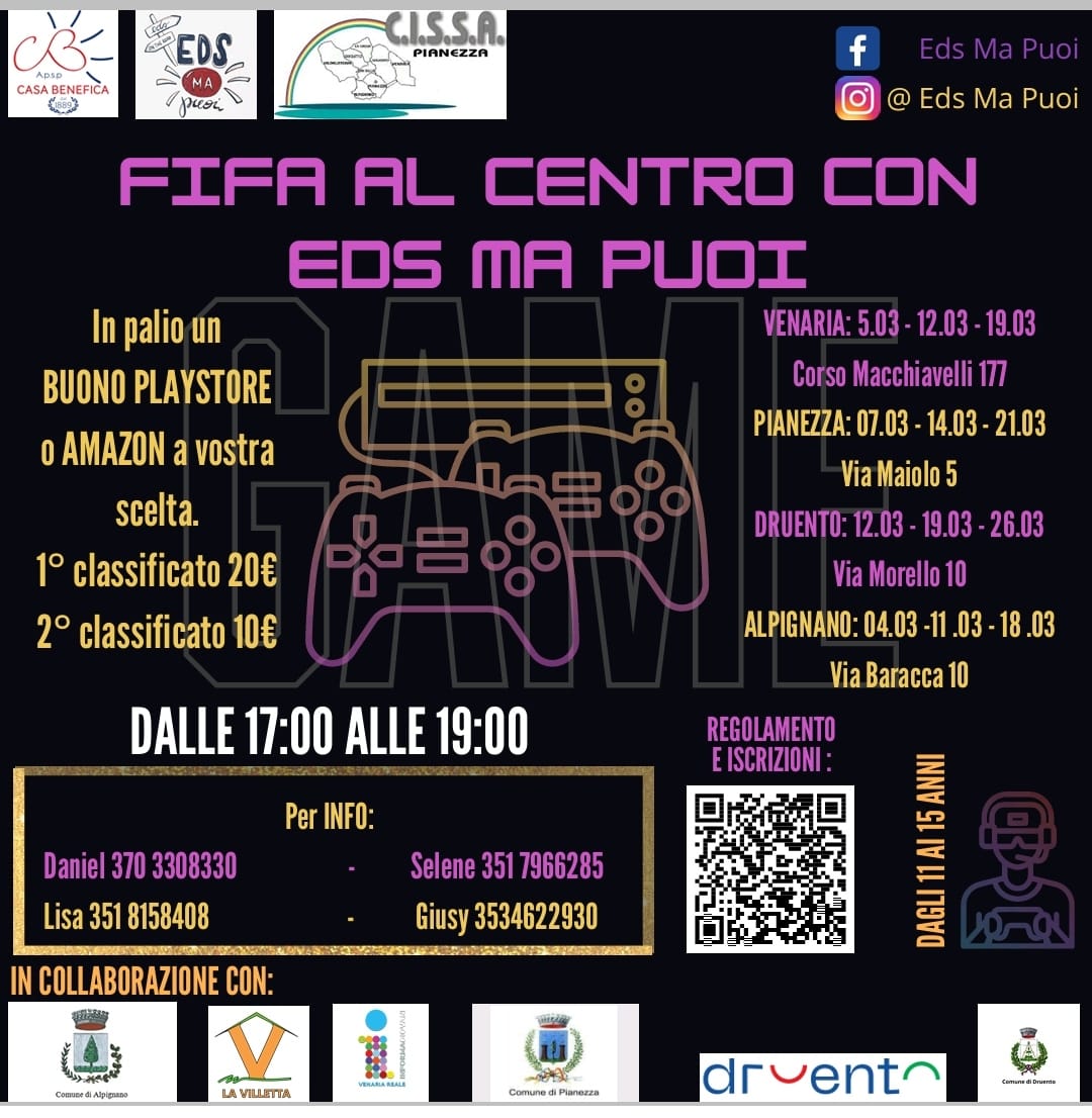 Arriva il torneo intercomunale di Fifa dedicato ai ragazz* dagli 11 ai 15 anni, che si articolerà in tre pomeriggi nei comuni di Alpignano, Druento, Pianezza e Venaria.