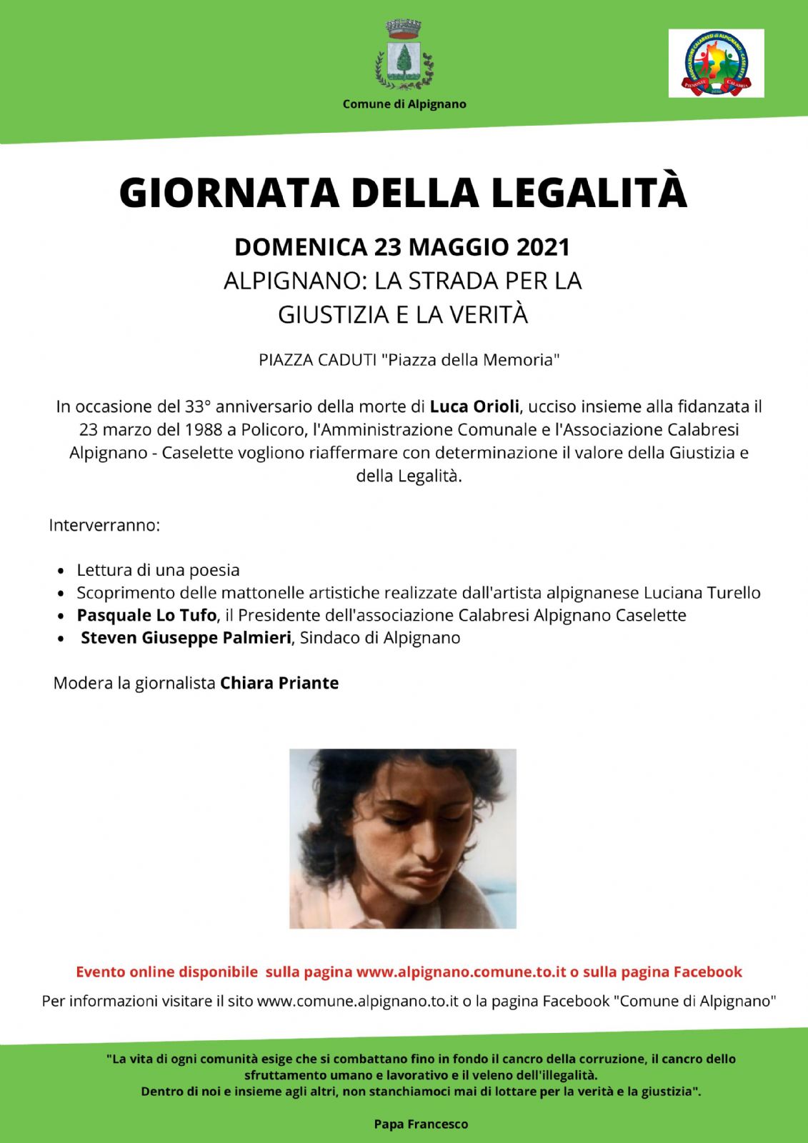 Ma è anche giornata dedicata alla cultura del rispetto, della legalità e della giustizia per una cittadinanza attiva e responsabile e per questo motivo oggi vogliamo ricordare un giovane, Luca Orioli, ucciso 33 anni fa a Policoro insieme a Marirosa Andreotta. Sua madre, Olimpia Orioli, che con forza e tenacia aspetta ancora verità e giustizia.