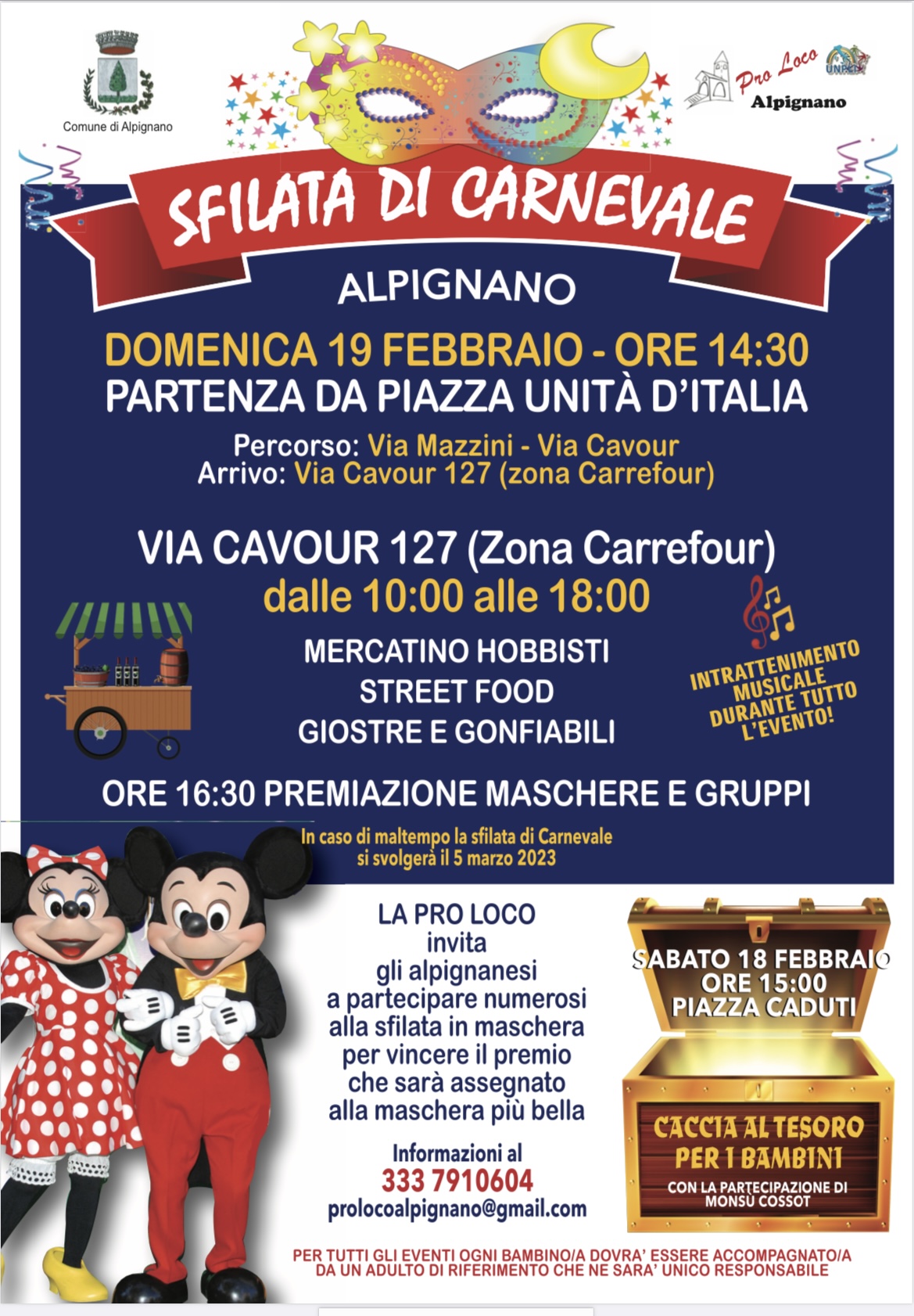 La Pro Loco Alpignano in collaborazione con il Comune organizza la sfilata di Carnevale.
