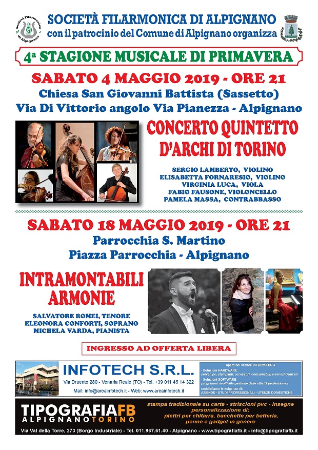 La Società Filarmonica di Alpignano organizza per la quarta stagione musicale di Primavera due concerti: