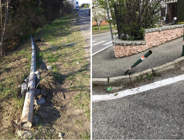 L'Ufficio Tecnico Area Lavori Pubblici informa che in via Costa e via Collegno a seguito di atti vandalici sono in corso le procedure di ripristino del palo della luce e del paletto in ferro urtati e divelti.