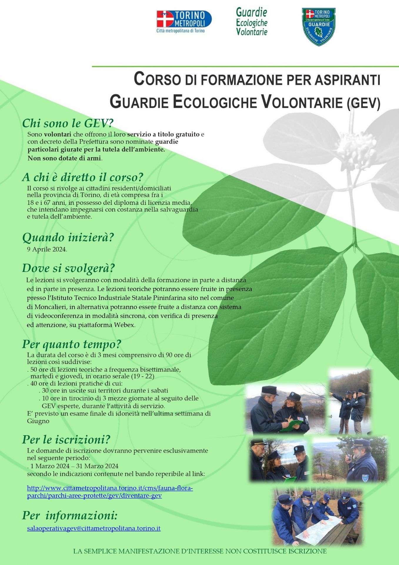 𝐃𝐚𝐥 𝟏 𝐌𝐚𝐫𝐳𝐨 𝟐𝟎𝟐𝟒 𝐟𝐢𝐧𝐨 𝐚𝐥 𝟑𝟏 𝐌𝐚𝐫𝐳𝐨 𝟐𝟎𝟐𝟒 sono aperte le iscrizioni per il corso di formazione per aspiranti Guardie Ecologiche Volontarie (GEV).