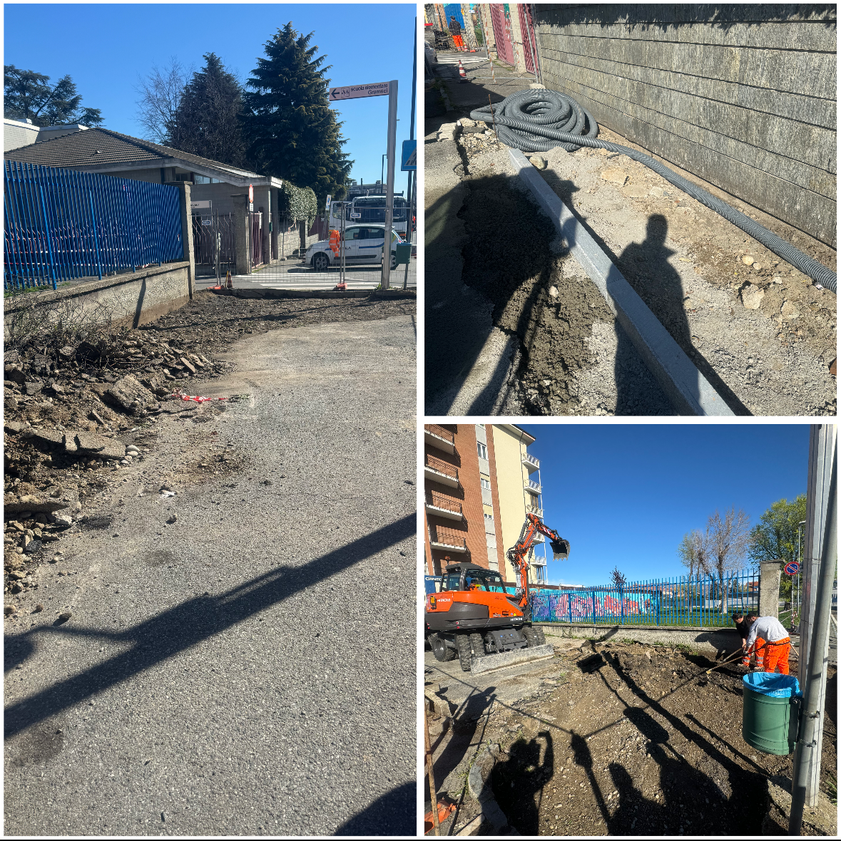 - realizzazione delle rampe di accesso pedonali per l'eliminazione delle barriere architettoniche e posa tubazioni per futuri sottoservizi.