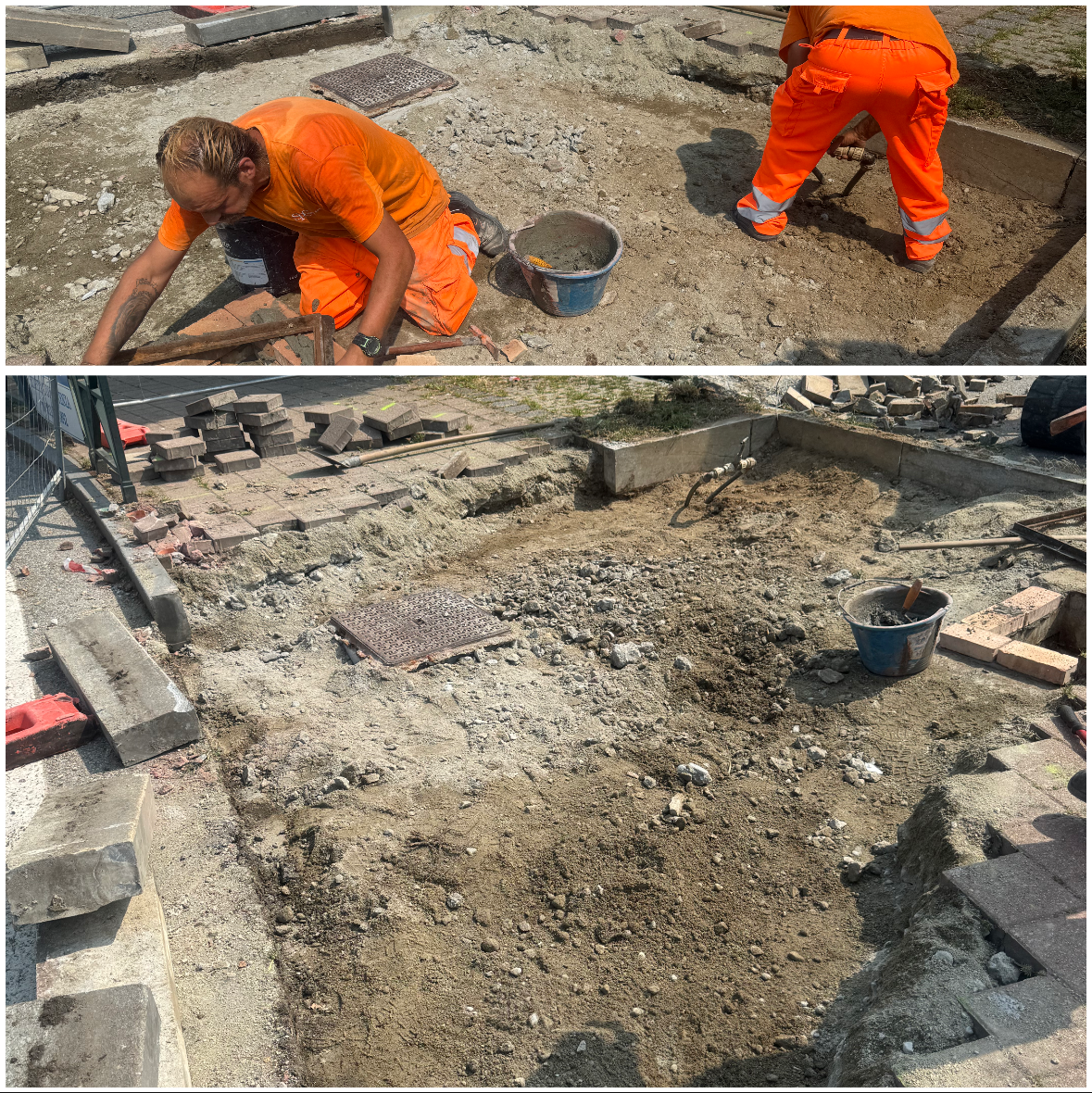 Oggi sono in corso i lavori di realizzazione del varco in piazza Vittorio Veneto per il passaggio della pista ciclabile in direzione via Provana.