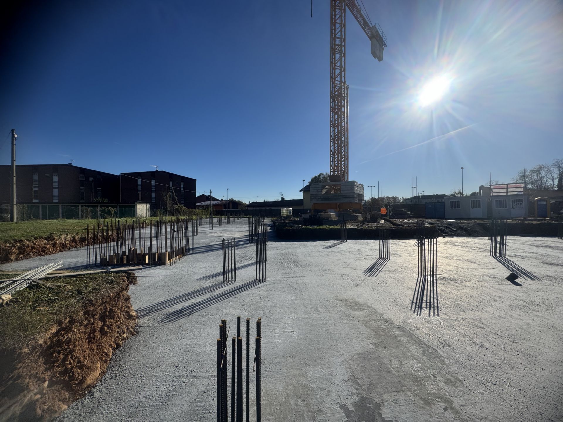 Ad oggi sono terminate la attività di getto di calcestruzzo per la realizzazione della platea di fondazione della struttura portante antisismica.