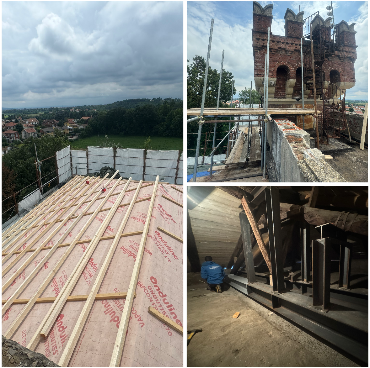 - completamento ponteggio nella porzione della torre della villa storica.