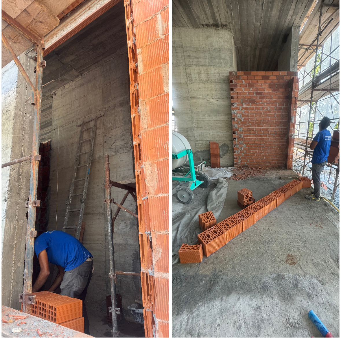Oggi sono in corso i lavori di posa dei laterizi per la realizzazione dei muri divisori al piano terra del nuovo edificio.