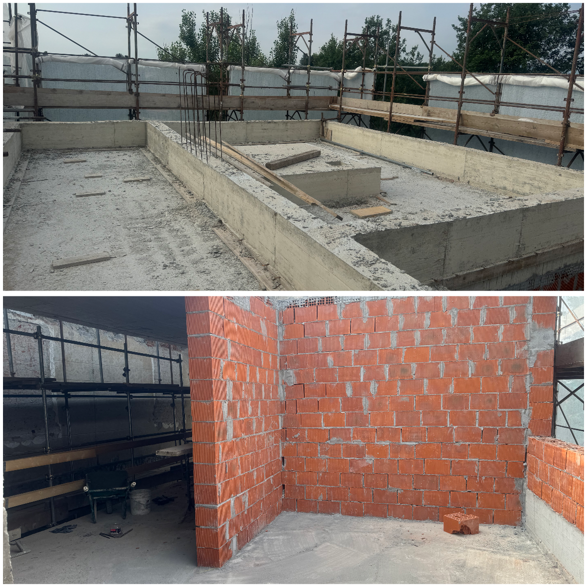 - posa dei laterizi per la realizzazione dei muri divisori al piano primo del nuovo edificio;