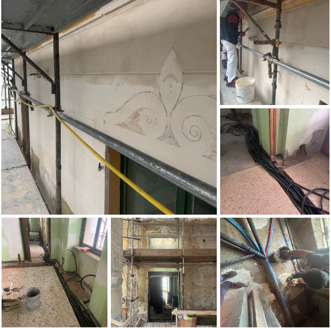- posa corrugati per impianto rete e dati villa storica piano primo.