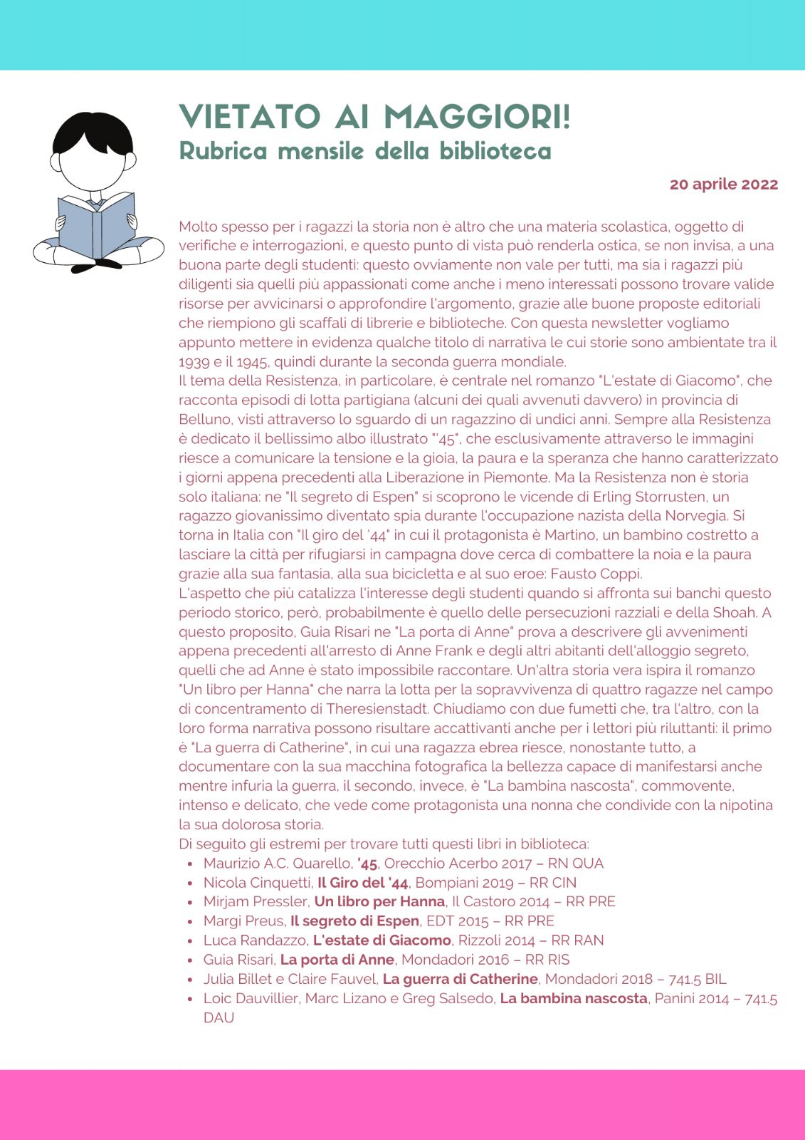 Di seguito gli estremi per trovare tutti questi libri in biblioteca: