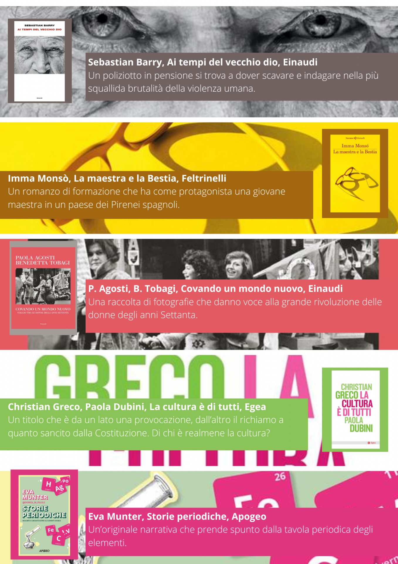 Nel mese di marzo le novità inserite in biblioteca hanno riguardato soprattutto la saggistica a cui dedichiamo un consiglio in più: