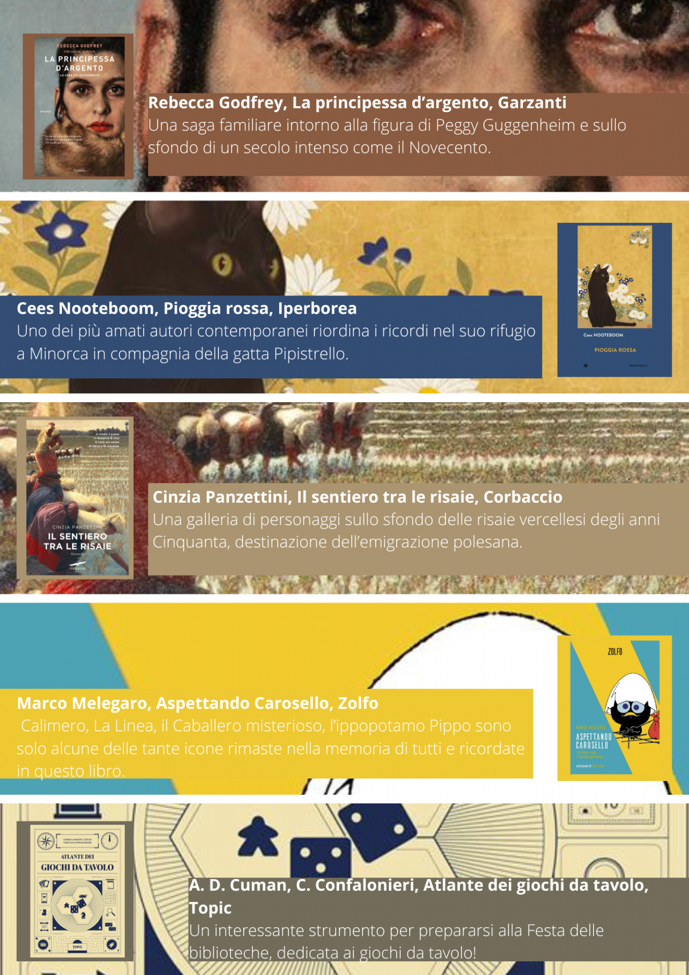 Anche in estate abbiamo continuato a incrementare il patrimonio librario con l'inserimento di novità, da cui abbiamo selezionato qualche titolo da consigliarvi: