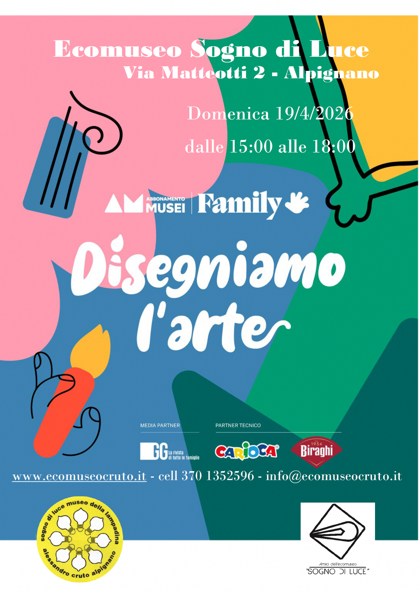 L'Associazione Amici dell'Ecomuseo Sogno di Luce organizza l'evento "Disegniamo l'arte", dedicato al pubblico dei più piccoli.