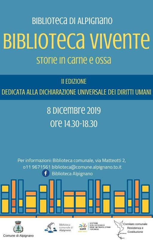 Domenica 8 dicembre dalle 14,30 alle 18,30 la biblioteca comunale propone la seconda edizione della Biblioteca vivente, dedicata alla Dichiarazione universale dei diritti umani.