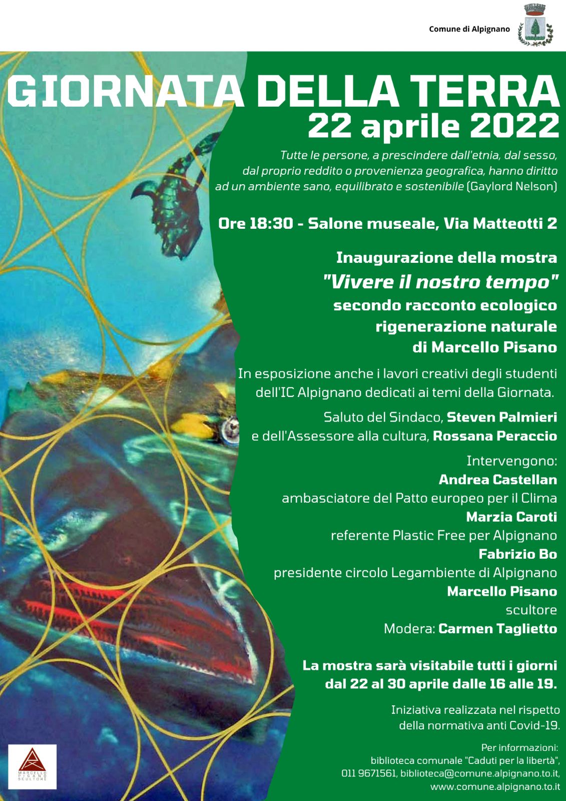 In occasione della Giornata mondiale della Terra che si celebra in tutto il mondo il 22 aprile di ogni anno l'Amministrazione comunale ha organizzato una mostra dell'artista Marcello Pisano dal titolo: