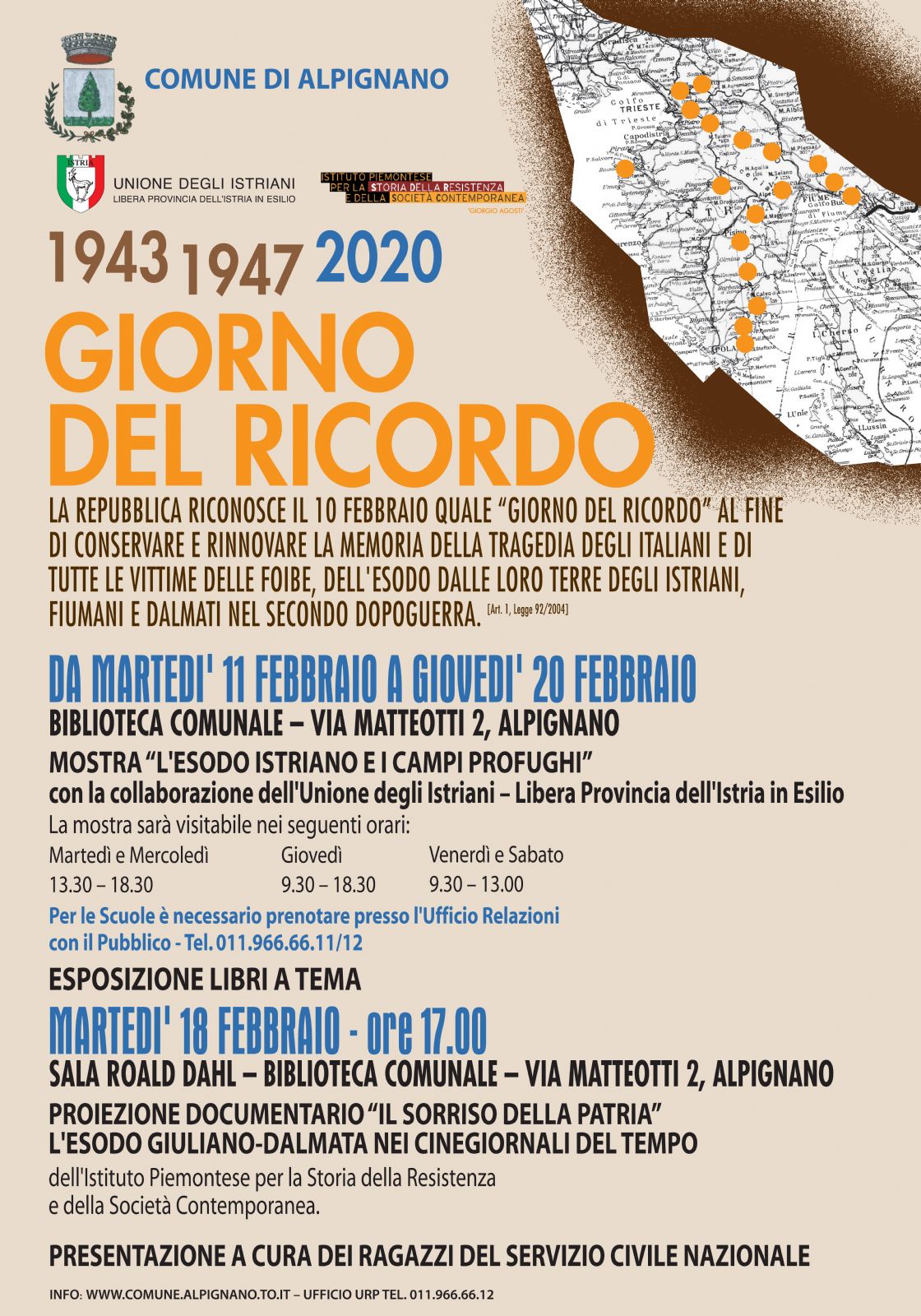 Per il Giorno del Ricordo il Comune di Alpignano organizza nella Biblioteca Comunale: