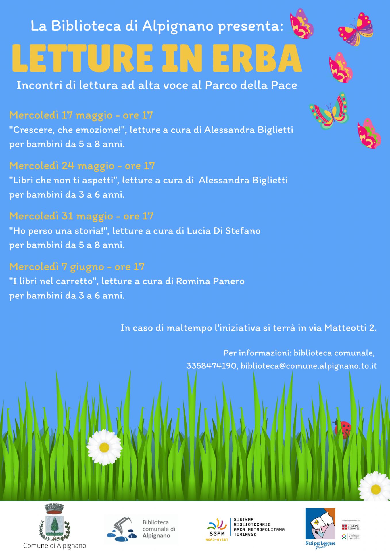 La rassegna fa parte del progetto Nati per leggere, a cui la biblioteca aderisce in collaborazione con le altre biblioteche dello Sbam nord ovest, realizzato con il sostegno di Regione Piemonte e Fondazione Compagnia di San Paolo.
