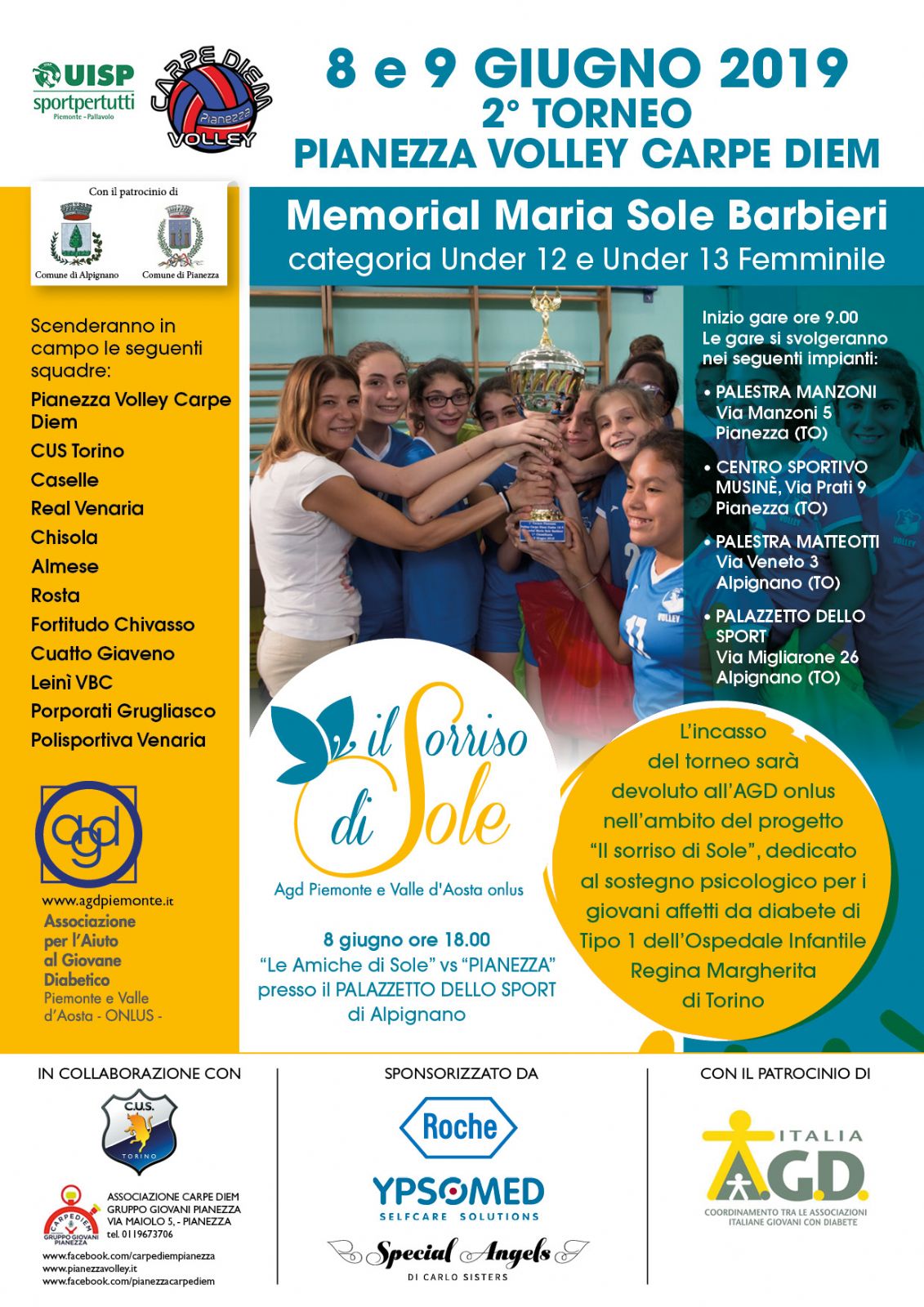 L'Associazione Pianezza Volley Carpe Diem organizza il Memorial Maria Sole Barbieri, categoria Under 12 e Under 13 femminile, sabato 8 e domenica 9 giugno.