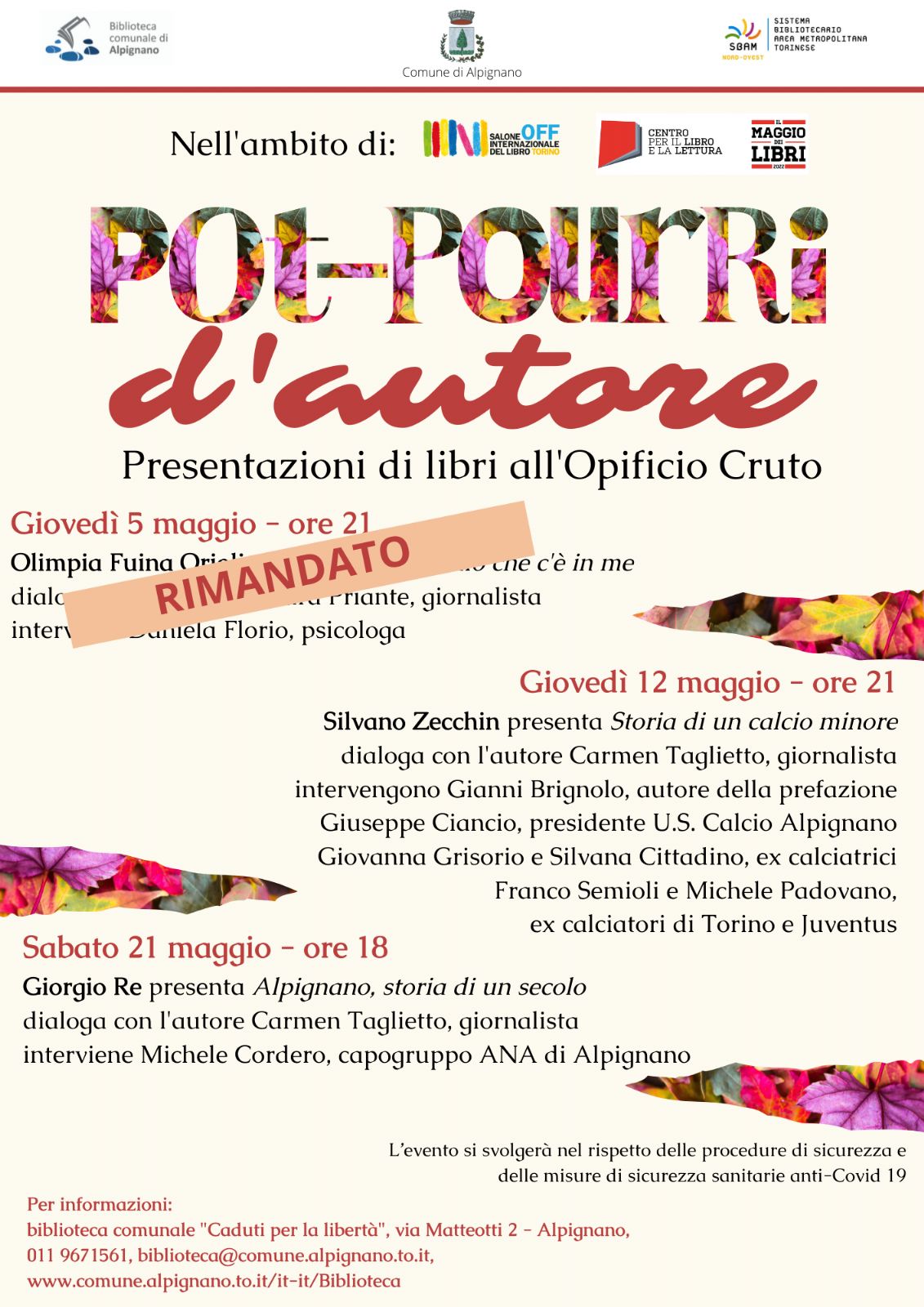 "Pot-Pourri d'autore", ultimo appuntamento con i libri all'Opificio Cruto sabato 21 maggio