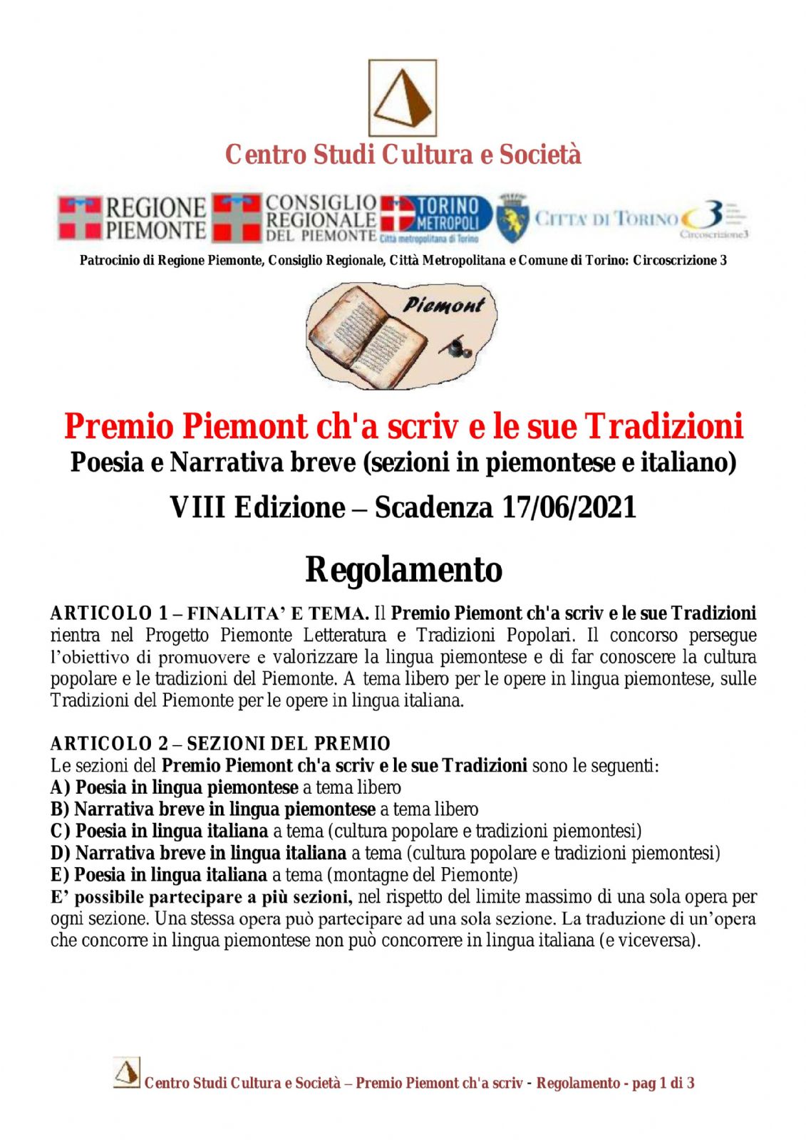 Premio Piemont ch'a scriv e le sue Tradizioni - VIII^ edizione