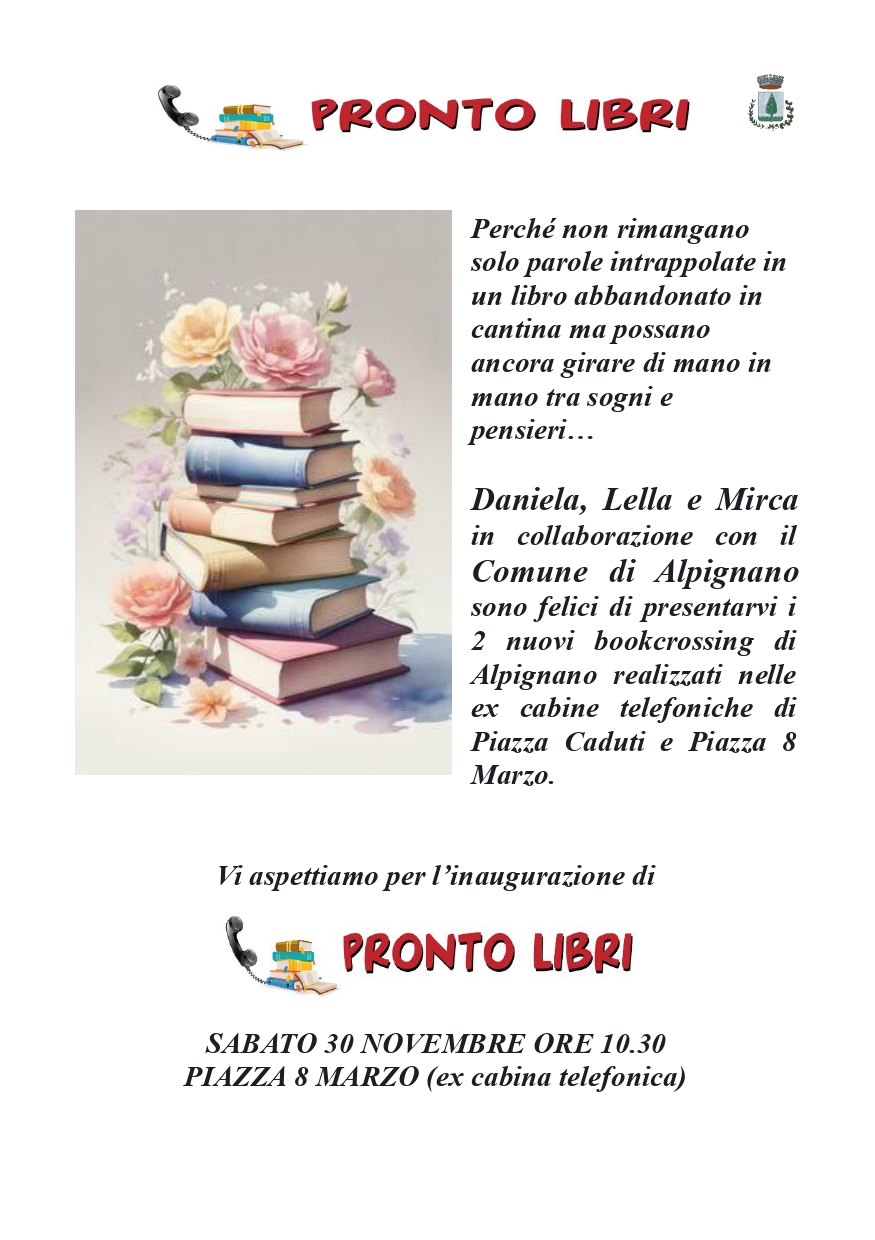 Vere e proprie librerie “all'aperto” dove sarà possibile prendere un libro, leggerlo e riportarlo oppure portare altri libri, tutto gratuitamente e rispettando alcune regole. Le cabine, situate in piazza Caduti e piazza 8 Marzo, allestite con scaffali e protette dal maltempo, avranno all'interno libri organizzati in base all'argomento.
