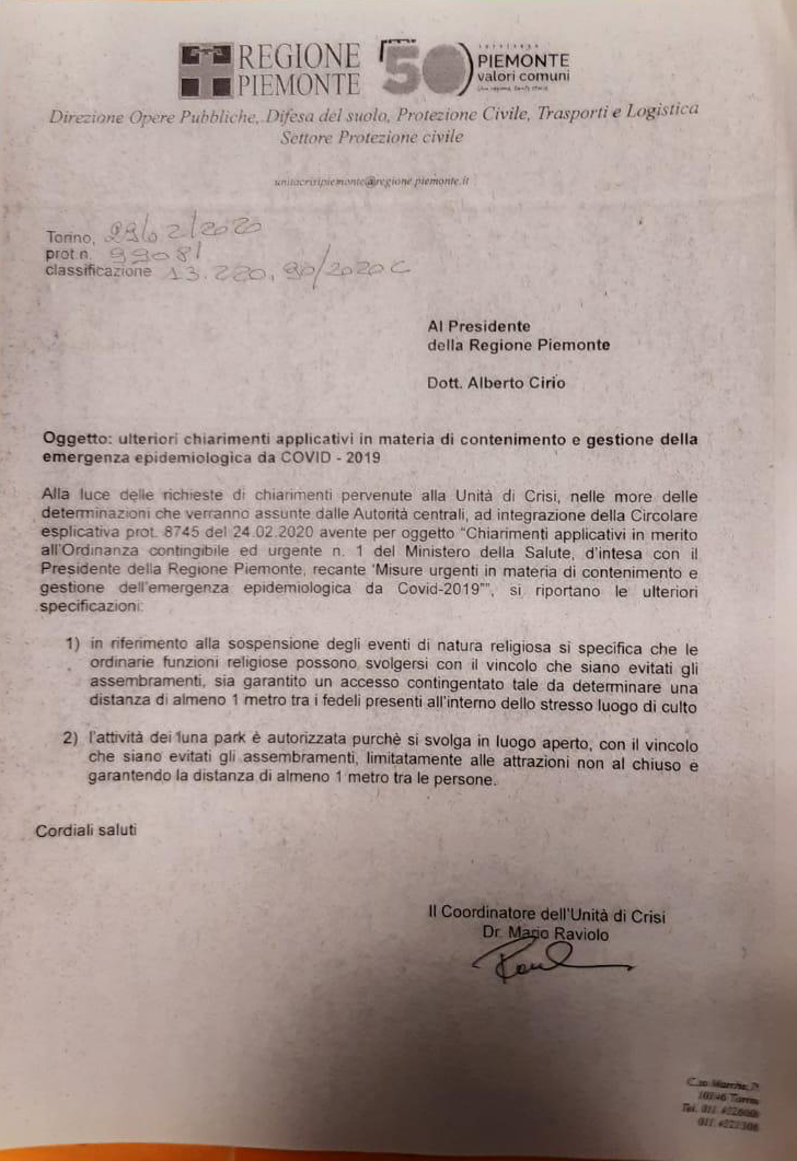 Ulteriori chiarimenti applicativi in materia di contenimento e gestione dell'emergenza epidemiologica da COVID-2019