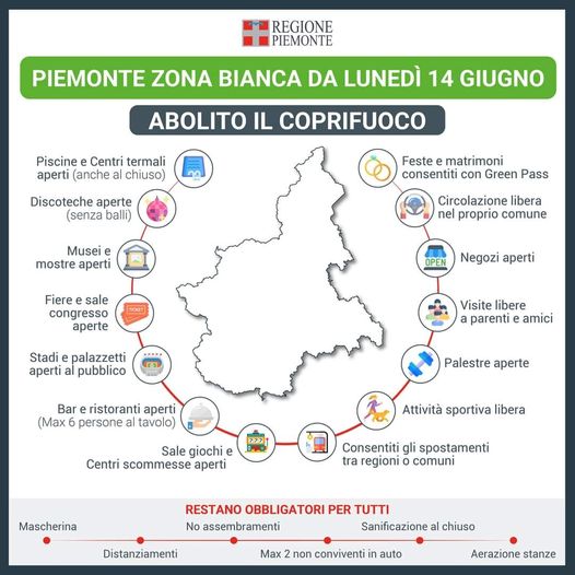 Di seguito l'Ordinanza della Regione Piemonte, le regole della zona bianca e l'Ordinanza del Ministro della salute.