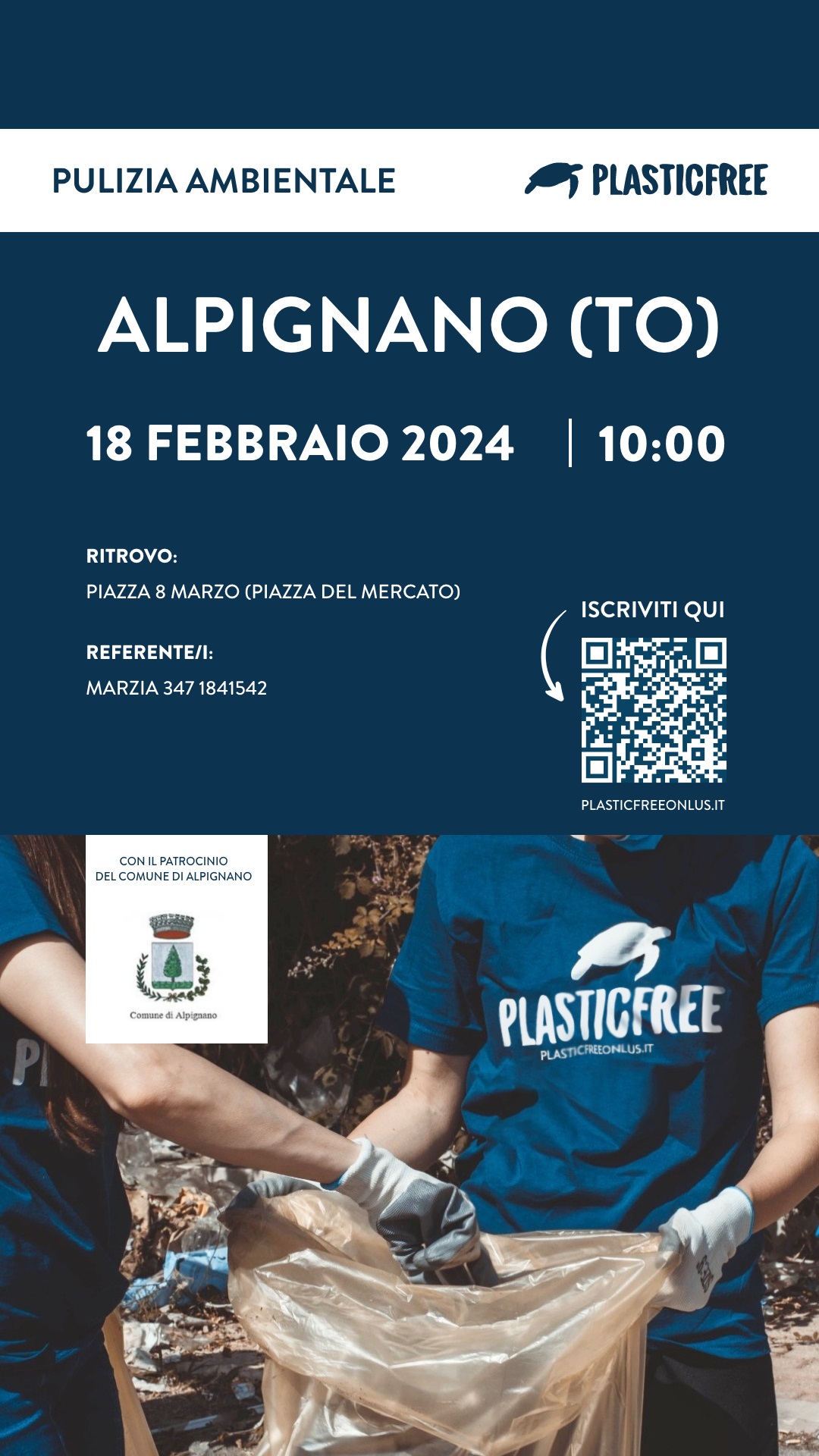 Si comunica che la prossima data raccolta 𝐏𝐥𝐚𝐬𝐭𝐢𝐜 𝐅𝐫𝐞𝐞 𝐀𝐥𝐩𝐢𝐠𝐧𝐚𝐧𝐨 si terrà 𝐃𝐨𝐦𝐞𝐧𝐢𝐜𝐚 𝟏𝟖 Febbraio 𝐚𝐥𝐥𝐞 𝐨𝐫𝐞 𝟏𝟎:𝟎𝟎 con 𝐫𝐢𝐭𝐫𝐨𝐯𝐨 𝐢𝐧 𝐏𝐢𝐚𝐳𝐳𝐚 𝟖 𝐦𝐚𝐫𝐳𝐨, 𝐞 𝐩𝐮𝐥𝐢𝐳𝐢𝐚 𝐬𝐩𝐨𝐧𝐝𝐞 𝐃𝐨𝐫𝐚 𝐝𝐢𝐞𝐭𝐫𝐨 𝐥𝐚 𝐩𝐢𝐚𝐳𝐳𝐚.