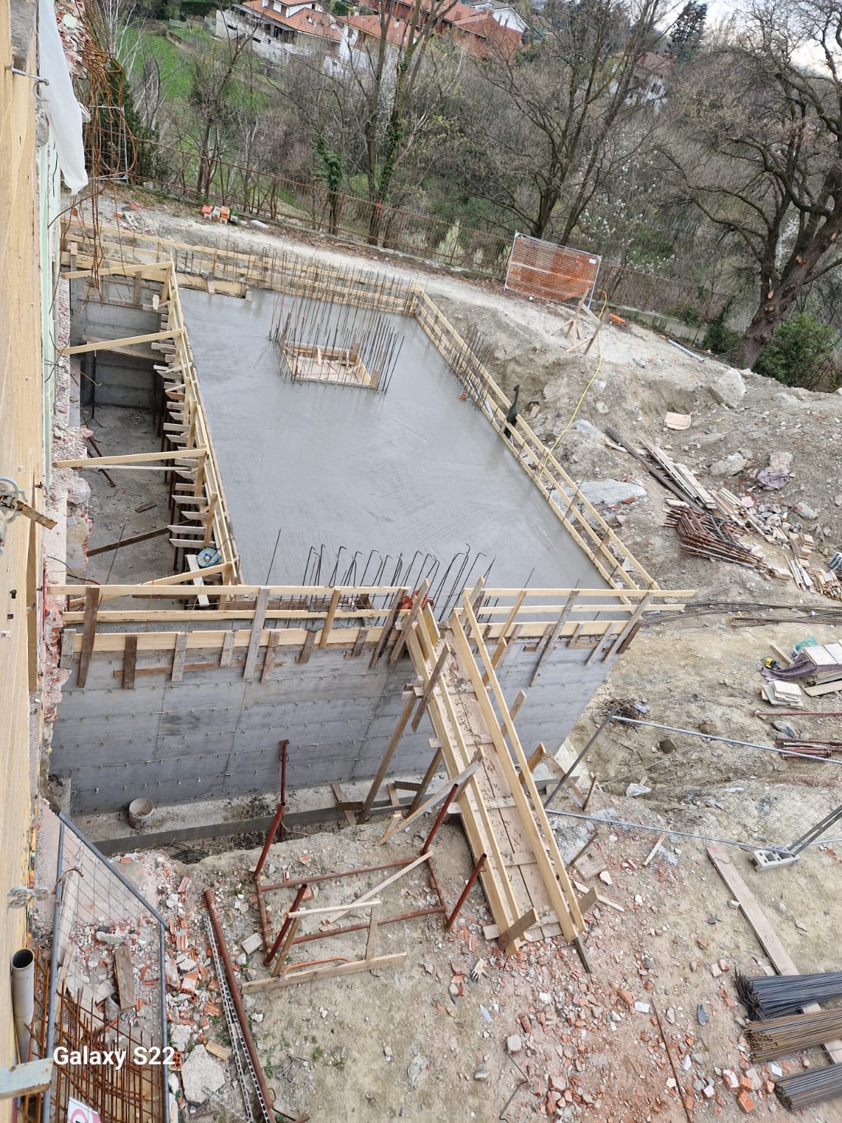 Oggi sono in corso le attività di getto in calcestruzzo del solaio del piano terreno del nuovo blocco servizi della villa storica.