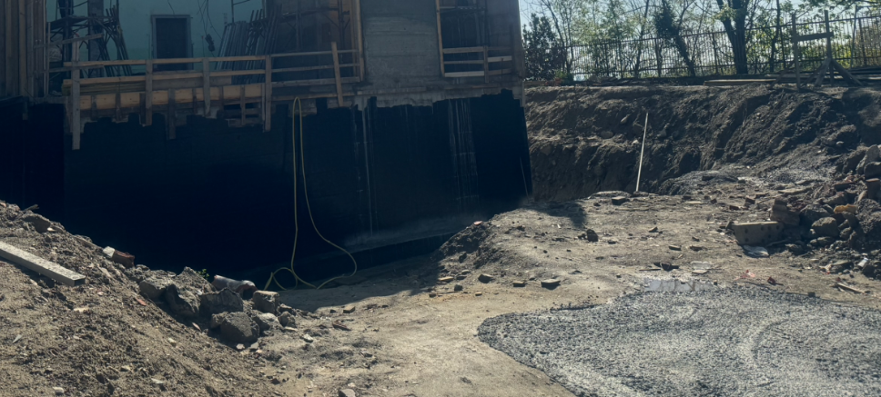 Sono in corso i lavori propedeutici alla posa della membrana impermeabilizzante del muro controterra del nuovo edificio a servizio della villa storica.