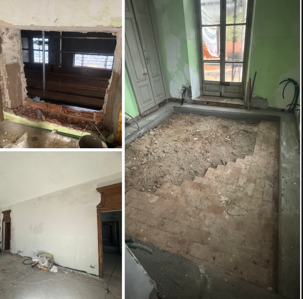 - preparazione delle pareti interne della villa storica al piano primo e stesura della prima mano di sottofondo.