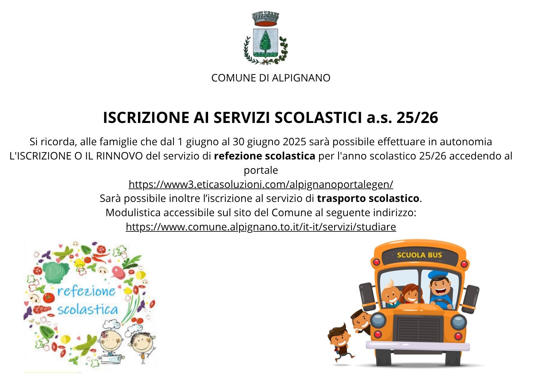 https://www3.eticasoluzioni.com/alpignanoportalegen/Sarà possibile inoltre l’iscrizione al servizio di trasporto scolastico.