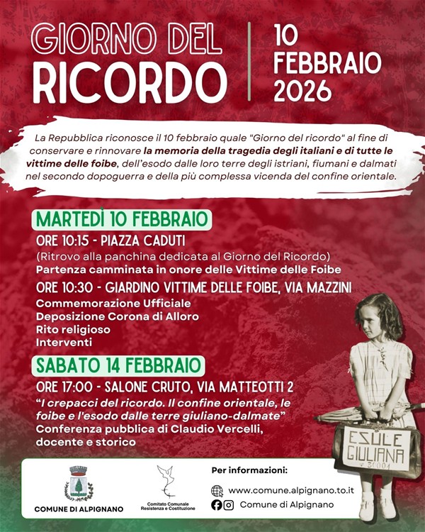 1° febbraio 2026 il Comune di Alpignano aderisce alla Giornata Nazionale delle Vittime Civili delle Guerre e dei Conflitti nel Mondo, con Istituzioni e Comuni di tutta Italia per chiedere: “Stop...