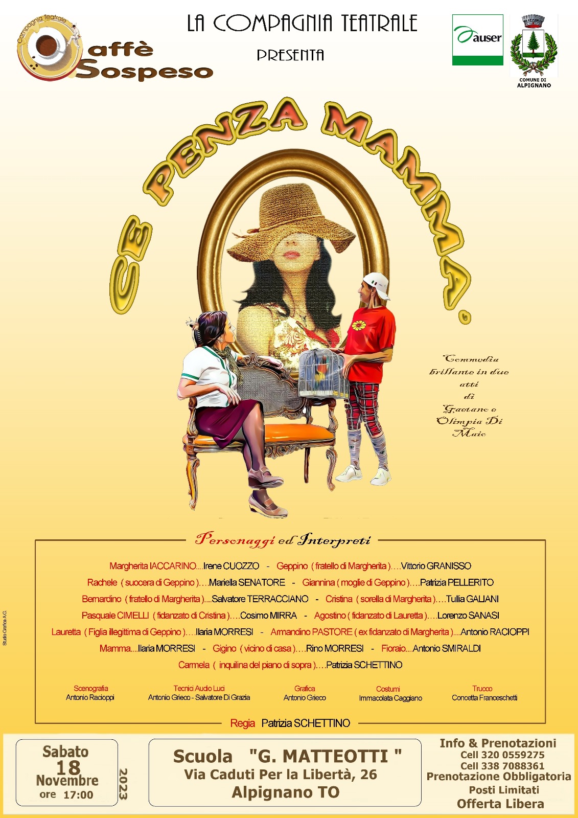 L'Associazione Auser APS presenta lo spettacolo teatrale "Ce penza mammà"