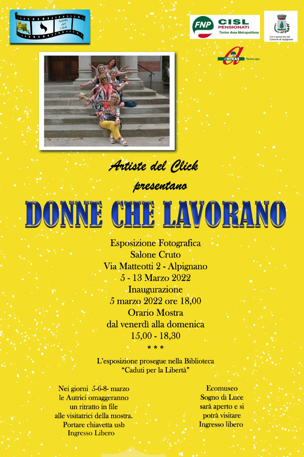 In occasione della Giornata Internazionale della Donna, FNP CISL Pensionati e le Artiste del click, con il patrocinio del Comune di Alpignano, propongono una mostra fotografica dedicata alle donne e il loro rapporto con il mondo del lavoro.