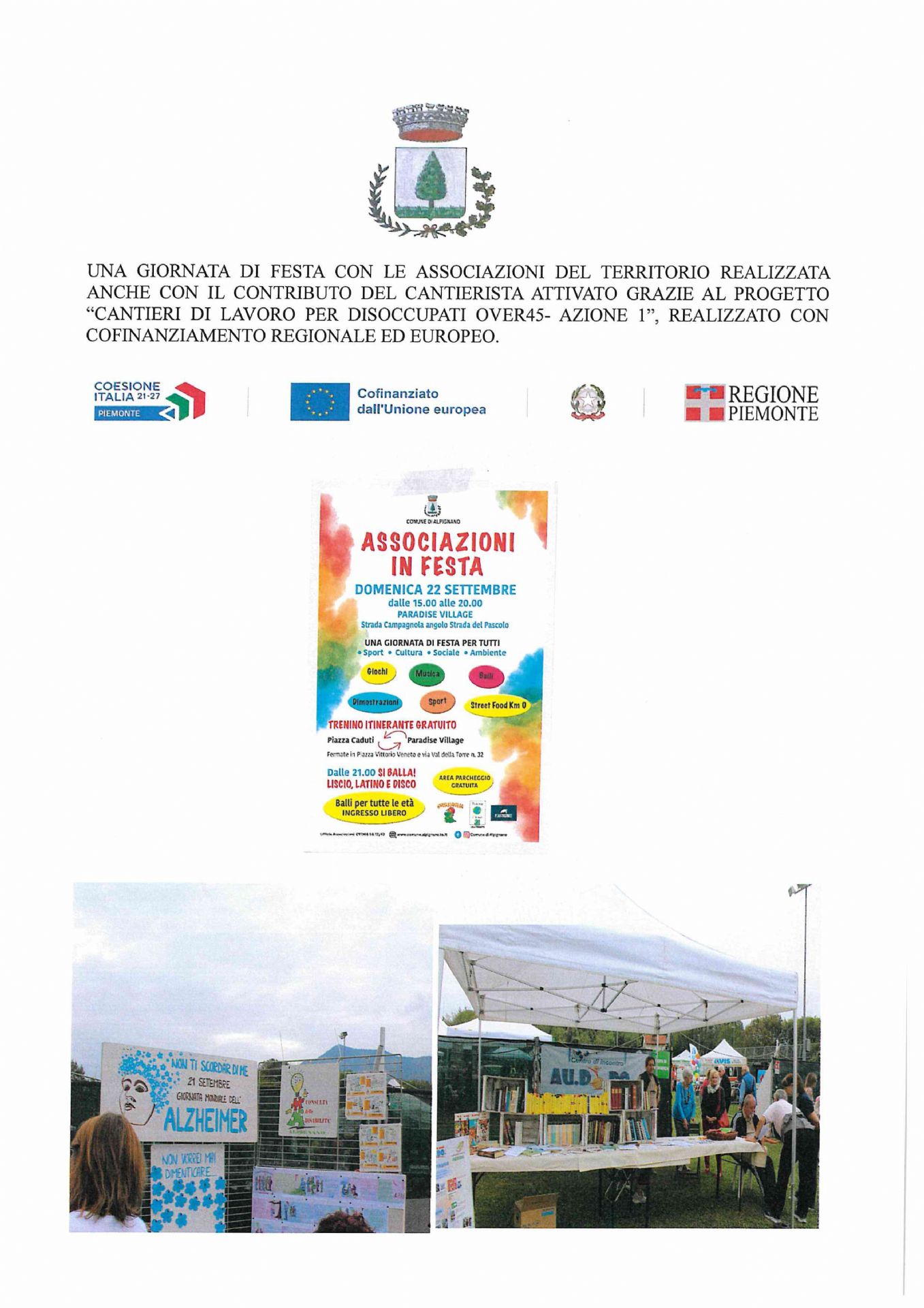 La riuscita di questo evento di festa è stata possibile anche grazie al contributo del cantierista attivato grazie al Progetto "𝐂𝐚𝐧𝐭𝐢𝐞𝐫𝐢 𝐝𝐢 𝐥𝐚𝐯𝐨𝐫𝐨 𝐩𝐞𝐫 𝐝𝐢𝐬𝐨𝐜𝐜𝐮𝐩𝐚𝐭𝐢 𝐨𝐯𝐞𝐫 𝟒𝟓" realizzato con cofinanziamento regionale ed europeo