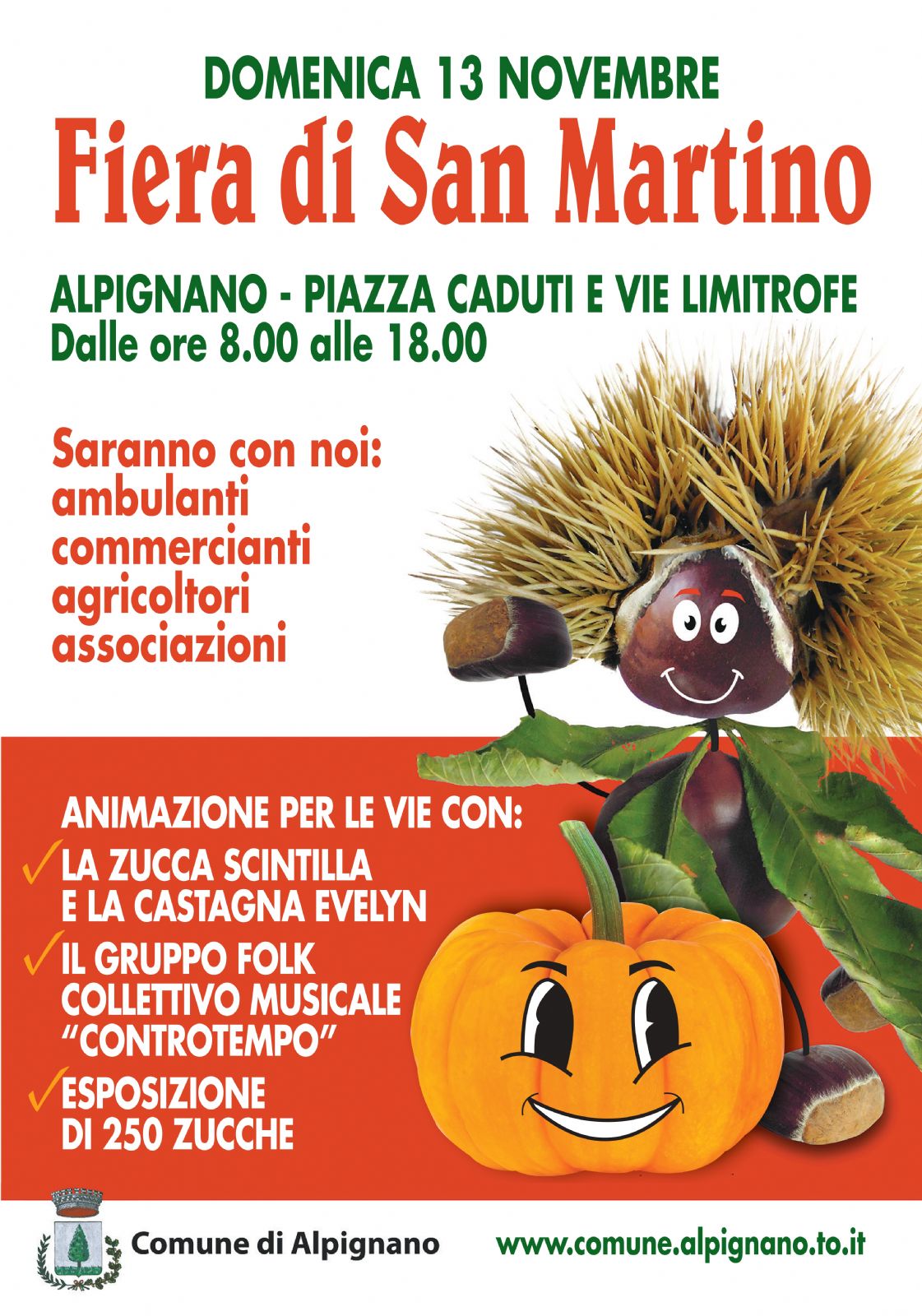"La fiera Autunnale di San Martino si avvicina con delle grandi novità, oltre alla proposta dei commercianti da quest'anno vi saranno delle nuove attrazioni tra cui uno spettacolo musicale itinerante e una mostra legata alla tradizione del nostro territorio" afferma l'Assessore al Commercio Davide Montagono "Da quest'anno sarà possibile ammirare una esclusiva mostra di zucche in tutte le sue varietà cosi da portare ad Alpignano uno dei prodotti tipici agricoli più apprezzati".