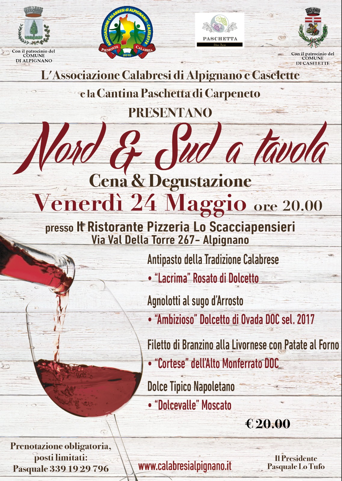 La prenotazione è assolutamente obbligatoria. Nella locandina troverete le indicazioni.